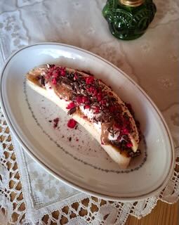 Dela bananen på längden och lägg på ett litet fat som passar.