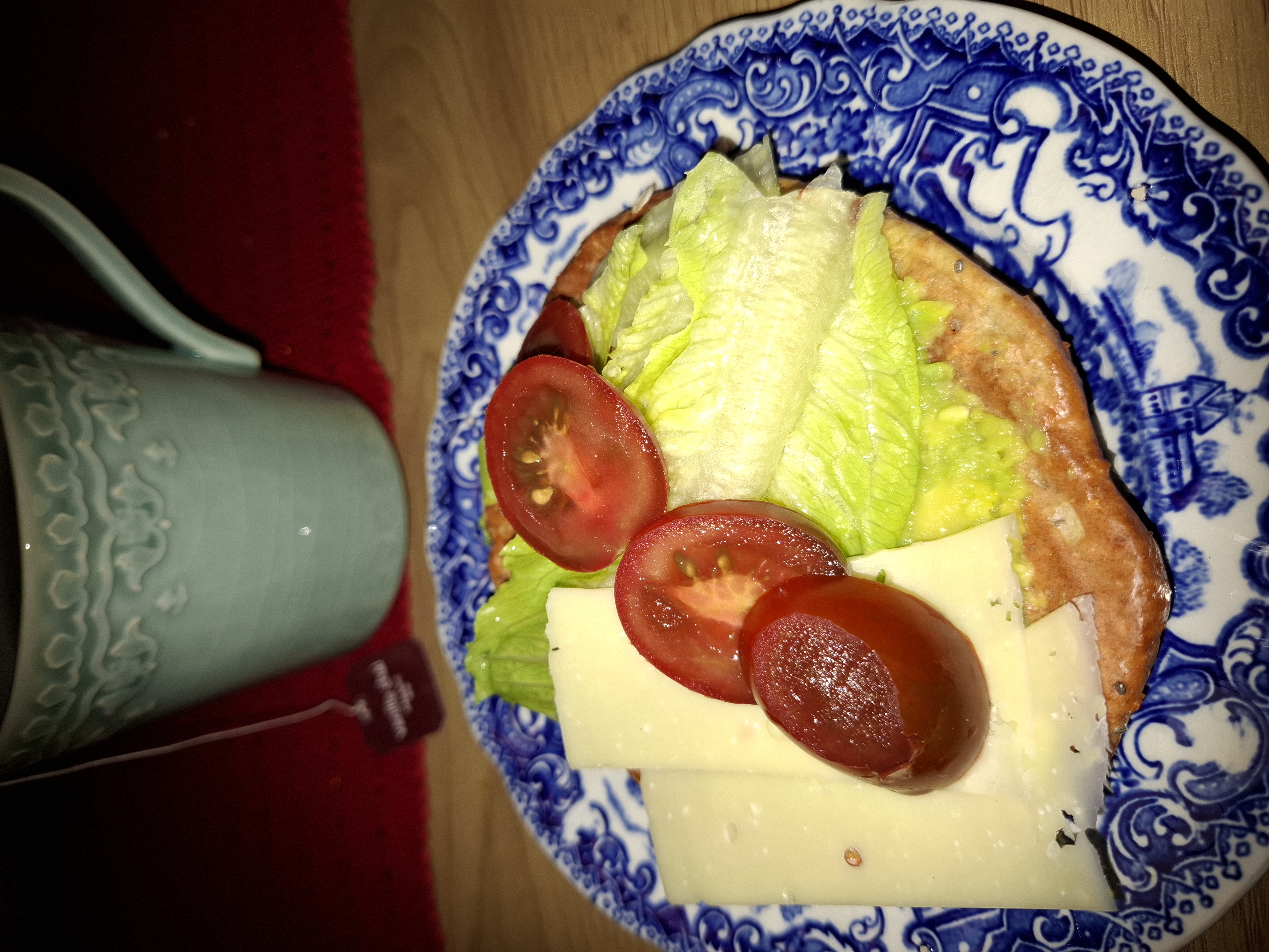 Dagens frukost – nybakat kesobröd med avokado, sallat, tomat och ost. Såå gott!