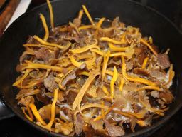 7 dl - 1 liter rensade trattisar eller gul trumpetsvamp (de ser ju nästan likadana ut och smakar precis lika gott)
