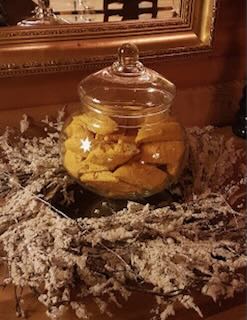 - Smält margarinet i en kastrull och häll samtidigt i saffranet däri så att smakerna får utvecklas tillsammans med fettet och värmen. Häll över det smälta margarinet i en bunke och låt svalna.